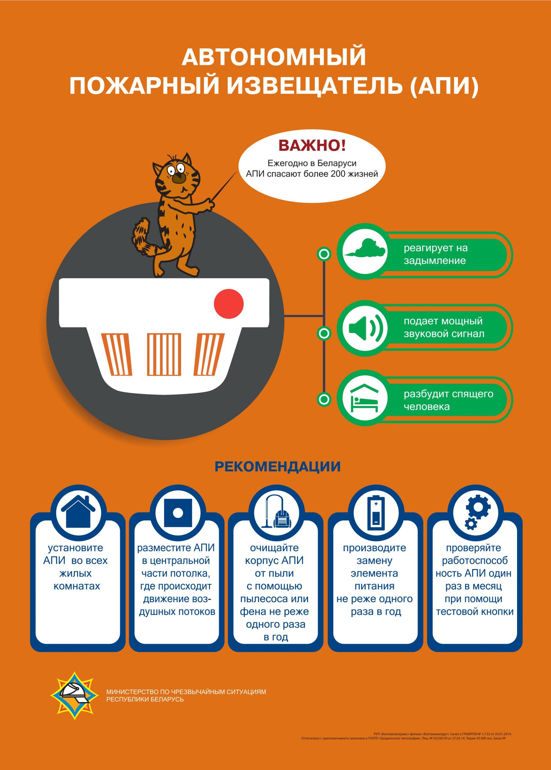С помощью АПИ в нашей стране ежегодно фиксируются сотни пожаров. О существовании автономных пожарных извещателей сегодня знает каждый. Необходимость их установки уже давно не вызывает сомнений, однако, многие люди пока не очень четко понимают важность данного прибора и то, что именно он может вовремя оповестить об опасности и дать возможность спасения людей и имущества от пожара. Чтобы обезопасить себя и своих близких, предлагаем Вам задуматься об установке в своем жилье автономного пожарного извещателя.